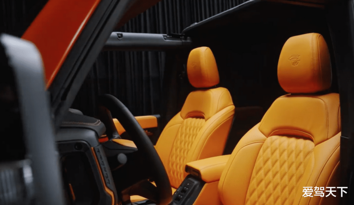 从外观来看,克蒂怪兽SV7 36周年纪念版换装了克蒂专属设计的车身套件。前脸采用黑色竖条幅格栅,搭配经典圆形大灯,保险杠样式更具越野风格,车顶加装射灯组,并新增后扰流板,整体造型更显硬朗张扬。车身侧面有了20英寸轮毂的加入,让这个大家伙看起来更加有劲。此外,克蒂怪兽SV 736周年纪念版在车身多处增加了象征身份属性的“SV7”标识。